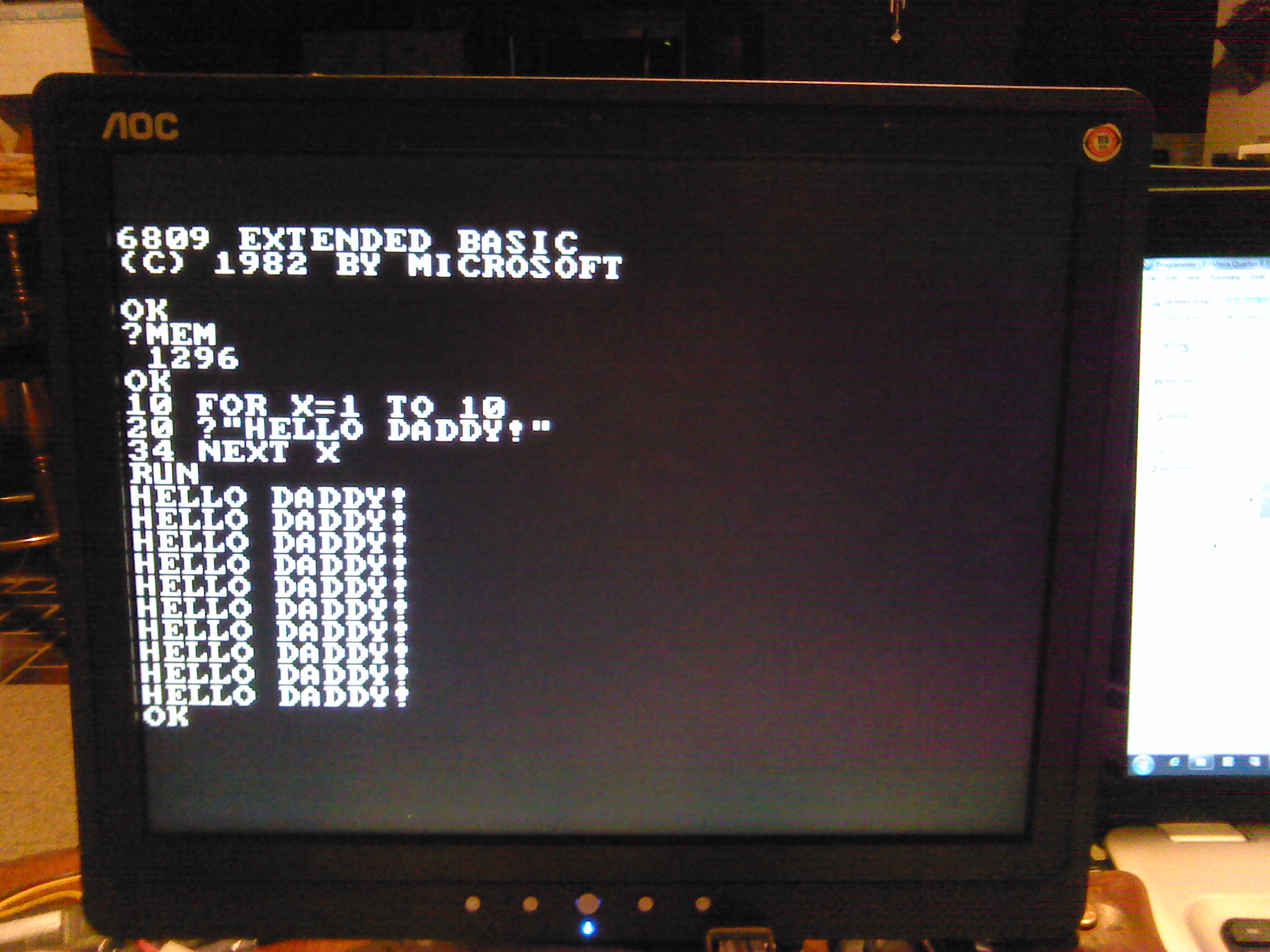 | 16:31, 21 April 2014 | 6809 Multicomp with a VGA Display and 2K of ram.jpeg (file) | 511 KB | This is the first VGA display of my 6809 Multicomp Microcomputer running with 2KB of ram with a PS/2 Keyboard. | 1 | |