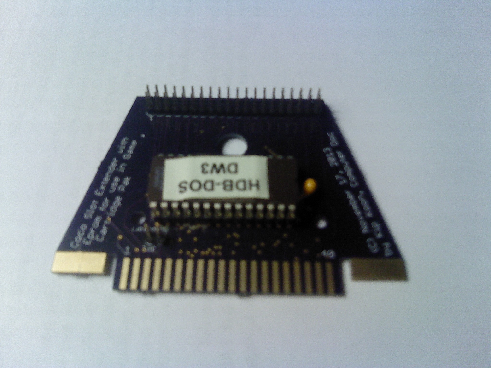 | 01:26, 24 October 2013 | Internal HDB-DOS Eprom Upgrade PCB installed into a Korean Coco 2B.jpg (file) | 542 KB | The Internal HDB-DOS Eprom Upgrade PCB is shown installed in a Korean Coco 2B in its first successful test configuration. Notice the red wire in the 14 pin socket. Its purpose is to pass the chip select signal on to the 27128 eprom. The blue wire co... | 1 | |
